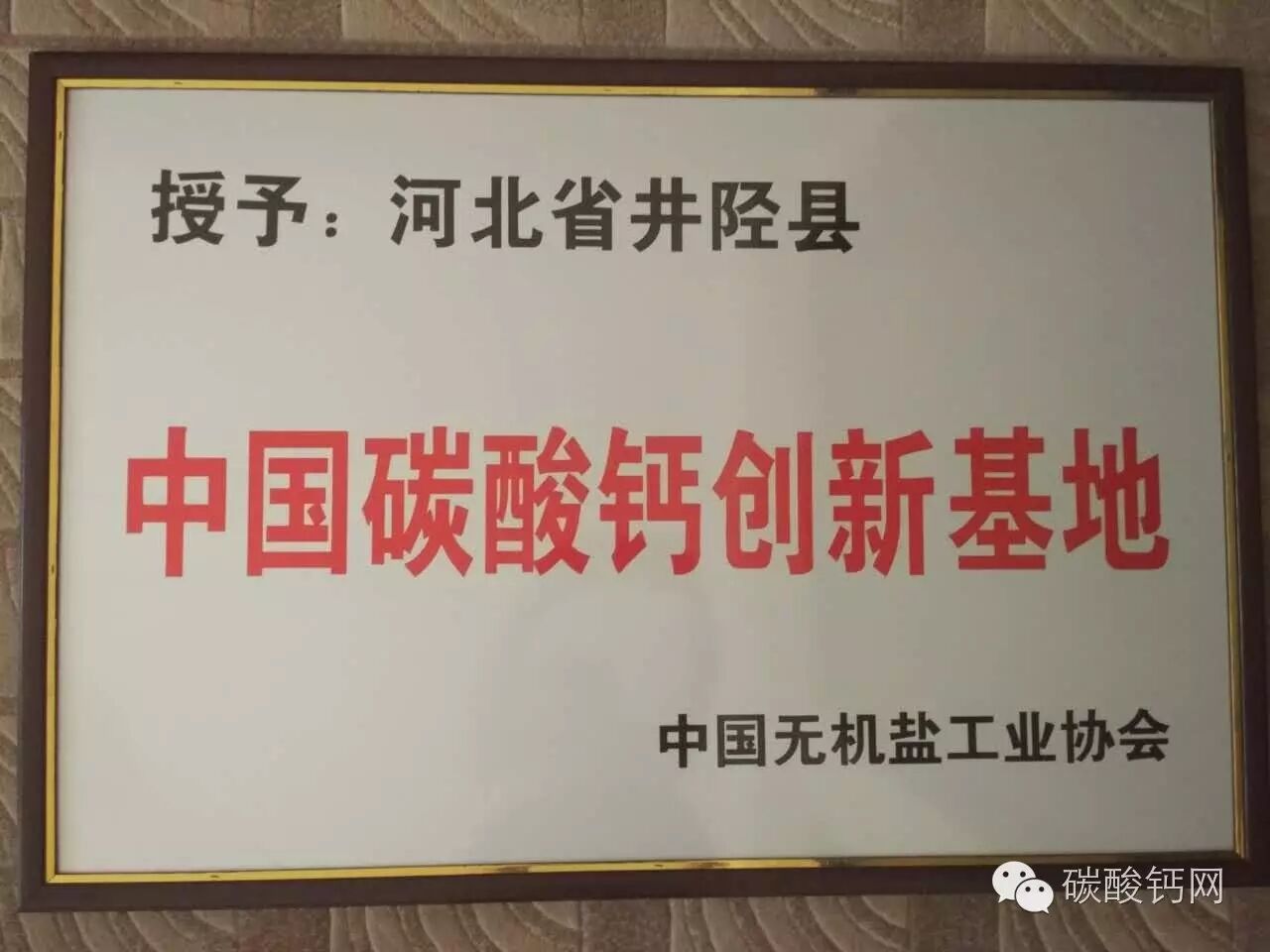 這是由中國無機鹽工業(yè)協會會長王孝峰親自頒發(fā)給井陘縣的“中國碳酸鈣創(chuàng)新基地”牌匾,是所有井陘縣與會人員的驕傲。