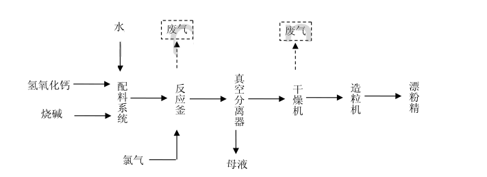 鈣法生產(chǎn)漂粉精技術(shù)為石灰漿料在反應(yīng)器中與氯氣反應(yīng),通過觀察生成物的結(jié)晶狀態(tài)確定反應(yīng)終點,反應(yīng)結(jié)束后的漿料經(jīng)分離、干燥、冷卻后得到成品。
