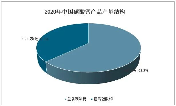碳酸鈣作為重要的建筑材料有著悠久的開(kāi)采歷史,在現(xiàn)代工業(yè)中,石灰石是制造水泥、石灰、電石的主要原料,是冶金工業(yè)中不可缺少的熔劑灰?guī)r,優(yōu)質(zhì)石灰石經(jīng)超細(xì)粉磨后,被廣泛應(yīng)用于造紙、橡膠、油漆、涂料、醫(yī)藥、化妝品、飼料、密封、粘結(jié)、拋光等產(chǎn)品的制造中。其中2020年中國(guó)重質(zhì)碳酸鈣產(chǎn)量占比為62.9%;輕質(zhì)碳酸鈣產(chǎn)量占比為37.1%。