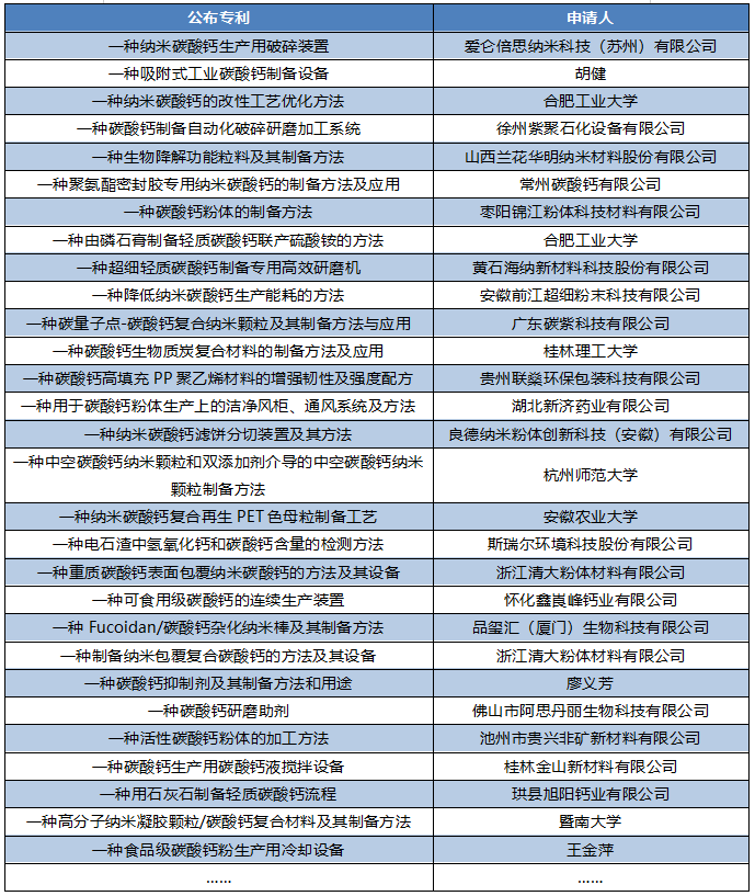除此之外,還有很多企業(yè)、科研機(jī)構(gòu)公布了碳酸鈣相關(guān)專利。