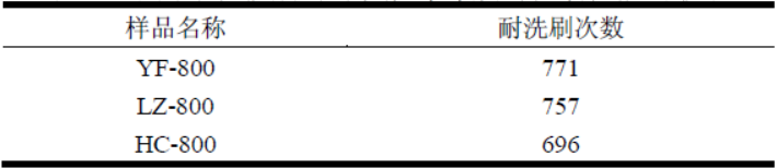 從表中可以看出,三種碳酸鈣的白度都在93 以上,其中采用海城白云石原礦生產(chǎn)的HC-800 的白度最高,達到98.1。從粉體細度上分析,選用相同的生產(chǎn)設(shè)備,采用相同的工藝參數(shù)生產(chǎn)出的800 目粉體,其粒徑分布基本相同。從吸油值上分析,LZ-800 的吸油值最低,吸油值越低,相對而言對乳液的需求量可能會更小,但是在同等情況下做出的成品可能會偏稀。從表中結(jié)果可以看出,江西永豐大方解加工的YF-800 碳酸鈣含量最高,雜質(zhì)元素和重金屬含量最低;連州小方解加工的LZ-800 的SiO2 最低,相對而言對加工設(shè)備的磨損也會低;海城白云石加工的HC-800,其成分為典型的白云石成分,其中MgO的含量較多,達到22.43%,碳酸鈣的純度較低,因此粉體一些性能可能會受到影響。上圖放大倍數(shù)為2000 倍。從圖中可以看出,三種碳酸鈣粒子均呈無規(guī)形狀,其中采用大方解生產(chǎn)的YF-800 顆粒表面孔和凹陷較多點,結(jié)晶度更完整,顆粒表面沒有附著太多小顆粒;而其他兩種礦石加工的粉體其表面都附著了一定的小顆粒,有些成為了一些小的團聚體。從粒子分布的均勻度上看,YF-800 的粒子分布的更均勻,顆粒的大小基本一致,而其他兩種碳酸鈣顆粒大小差異程度比較大,粒子分布相對不均勻一些。從表中可以看出,HC-800 的粘度最大,LZ-800 的粘度最小。這與三種碳酸鈣的吸油值有著一定的關(guān)系,吸油值就越大,相應(yīng)地也增加了對乳液的吸附,提高了整體粘稠度,這與吸油值的測試結(jié)果是一致的。 從表中可以看出,采用方解石原礦生產(chǎn)的重鈣應(yīng)用于乳膠漆中時其對比率均明顯高于白云石原礦生產(chǎn)的重鈣;在方解石產(chǎn)品中,大方解石生產(chǎn)的重鈣的對比率又比小方解石生產(chǎn)的重鈣高。 從表中 可以看出,采用永豐大方解石加工的YF-800 制備的乳膠漆漆膜的耐洗刷次數(shù)最高,達到771 次,其次是采用永豐大方解石加工的LZ-800,其耐洗刷次數(shù)為757 次,與YF-800 相當(dāng),采用海城白云石生產(chǎn)的HC-800 制備的乳膠漆的漆膜耐洗刷性能最差,耐洗刷次數(shù)為696 次,但均大于500 次,完全符合國家標準。
