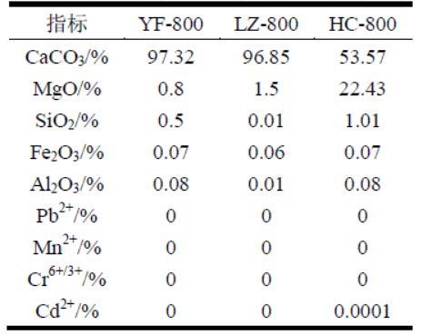 下面選用大方解石、小方解石及白云石三種原礦,采用環(huán)輥磨加工成800目重質(zhì)碳酸鈣,測試其物理性質(zhì)、化學(xué)組分和粒子形貌的區(qū)別,并將其添加到內(nèi)墻乳膠漆中,通過測定乳膠漆漆膜白度、粘度、對比率、光澤度及耐洗刷等指標來判定不同原礦對內(nèi)墻乳膠漆的性能影響。