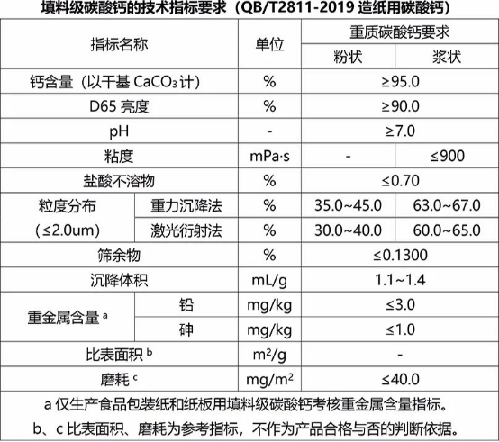 造紙用碳酸鈣技術(shù)指標(biāo)