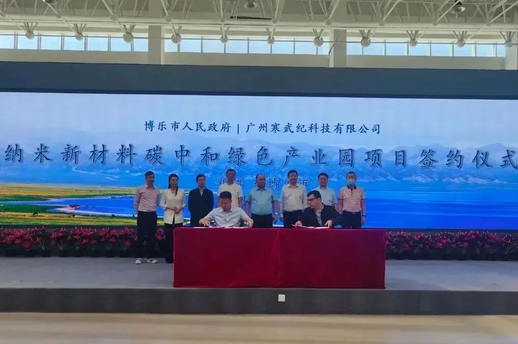 6月6日,新疆博樂市人民政府與廣州寒武紀科技有限公司納米新材料碳中和綠色產(chǎn)業(yè)園項目投資簽約儀式在博樂邊境經(jīng)濟合作區(qū)投資發(fā)展中心舉行。雙方簽約晶須納米高端復合材料和碳纖維項目,計劃總投資70億元。