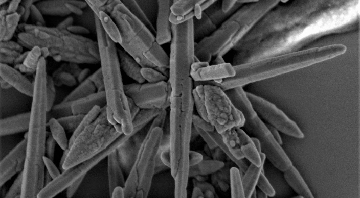 兩種碳酸鈣晶型樣本包括棒狀顆粒和紡錘狀顆粒。