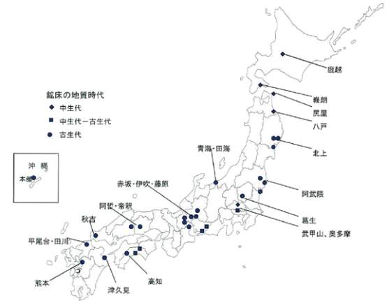 日本石灰石礦床分布圖