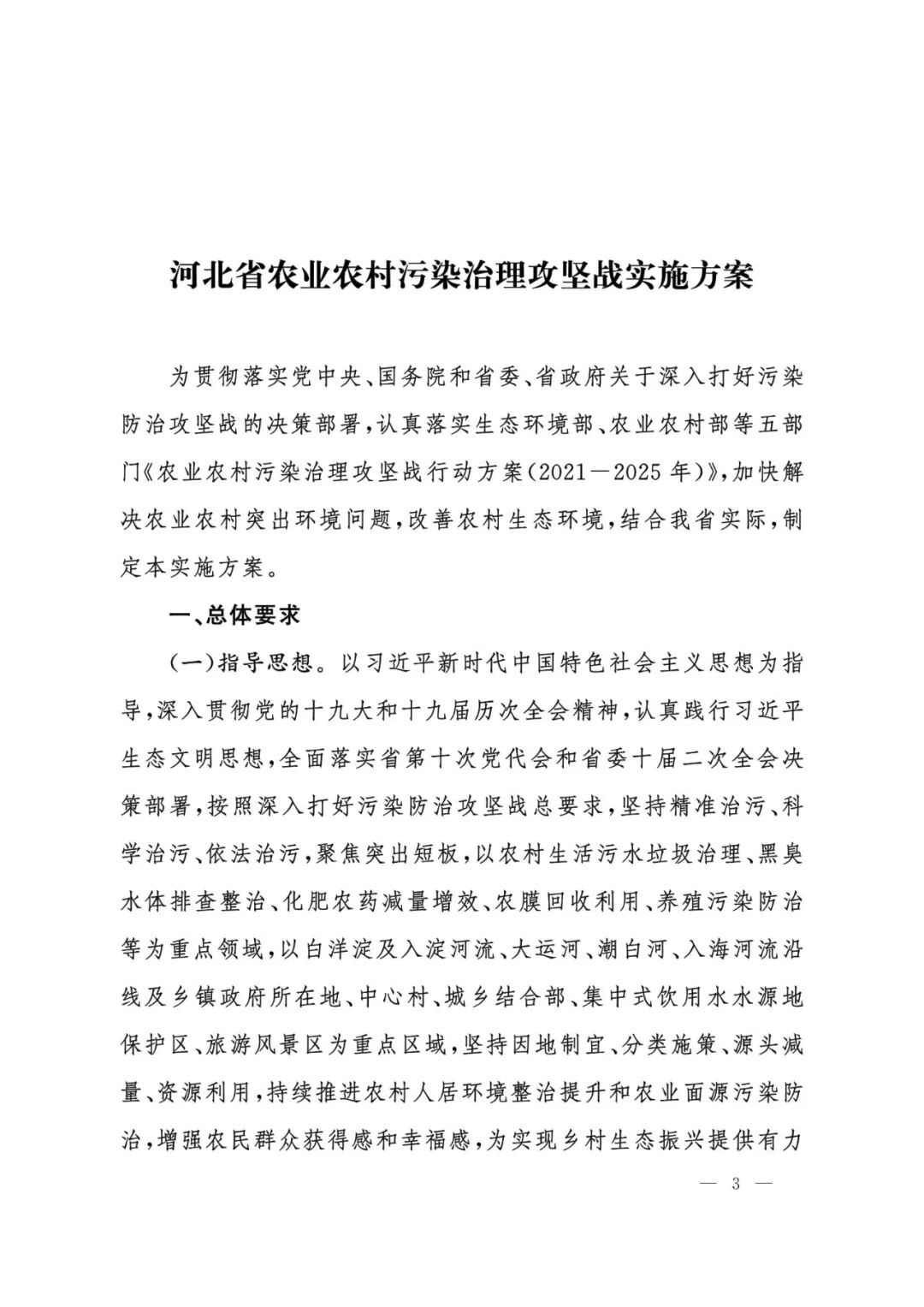 核心提示:《河北省農(nóng)業(yè)農(nóng)村污染治理攻堅戰(zhàn)實施方案》