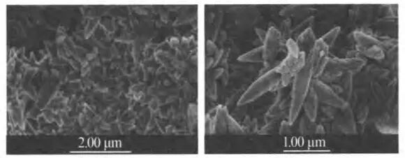 過濾水:對(duì)于過濾后的濾液,其中主要含有部分產(chǎn)品碳酸鈣顆粒,外觀呈乳白色,剛從離心機(jī)出來的濾液的濃度一般為3-4波美度,經(jīng)簡(jiǎn)單沉降后其濃度為2-3波美度。經(jīng)在某企業(yè)現(xiàn)場(chǎng)取得的濾液,經(jīng)檢測(cè)其pH值為7-8,濃度分別為3.77g/100ml和2.30g/100ml。其中所含碳酸鈣固體顆粒的電鏡照片見下圖。由圖可見,其顆粒大小為紡錘形,直徑約0.3um,長(zhǎng)約1um。