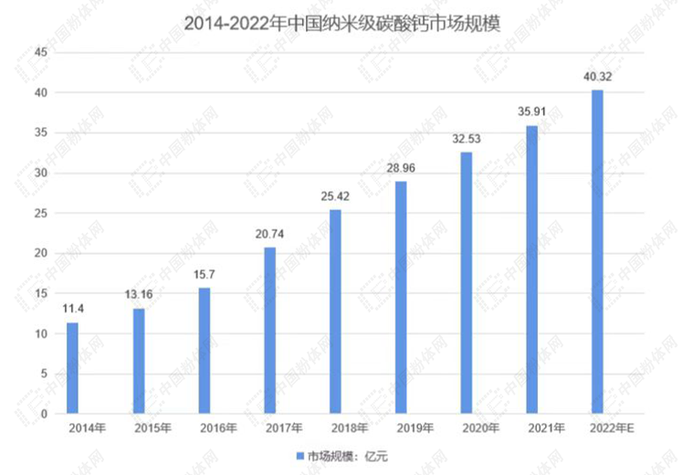 2014-2022年中國納米級碳酸鈣市場規(guī)模
