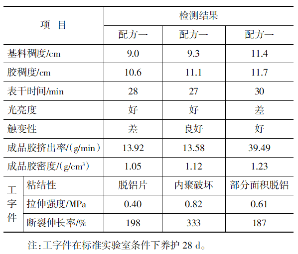 根據(jù)粉體的不同性質(zhì),設(shè)計(jì)了3種不同的應(yīng)用配方,以考察納米碳酸鈣K-A800和常規(guī)納米碳酸鈣在亮黑硅酮密封膠中替代氣相二氧化硅的可行性。其中,基料的配方見(jiàn)表3,硅酮密封膠的配方見(jiàn)表4,性能檢測(cè)結(jié)果見(jiàn)表5。