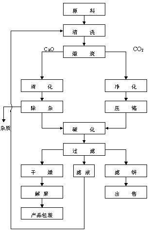 重質(zhì)碳酸鈣的生產(chǎn)工藝主要是粉碎、超細(xì)粉碎、分級和表面改性。輕質(zhì)碳酸鈣的生產(chǎn)工藝 一般以石灰石為原料,經(jīng)煅燒、消化、碳化、分離、干燥、分級、包裝等工序制備沉淀碳酸鈣產(chǎn)品。
