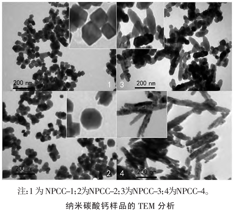 田偉等人采用加壓鼓泡碳化及高剪切乳化改性工藝合成出晶粒大小相當(dāng)、晶體形狀不同的納米碳酸鈣,并以其為填料制備單組分脫醇型硅酮密封膠,探究了納米碳酸鈣晶體形狀對硅酮密封膠力學(xué)性能的影響以及作用機制。 1、納米碳酸鈣合成 將濃度95~110g/L的氫氧化鈣漿液冷卻到工藝溫度(≤30℃),根據(jù)目標(biāo)晶形選擇加入不同晶形導(dǎo)向劑,攪拌均勻后加入小型加壓鼓泡碳化塔。氫氧化鈣漿液為連續(xù)相,凈化冷卻后的石灰窯窯氣(二氧化碳含量35%左右)為分散相,在高剪切乳化泵作用下促進氣、液、固三相傳質(zhì)和碳酸化反應(yīng),同時,借助熱電偶、電導(dǎo)率儀和pH計監(jiān)測碳酸化反應(yīng)進程。當(dāng)pH接近7.5,電導(dǎo)率值達到谷值又再次上升時,碳酸化反應(yīng)結(jié)束。將碳化得到的納米鈣熟漿,泵入改性罐中并加熱至75℃,根據(jù)固含量和BET數(shù)據(jù),加入1.05倍理論計量的復(fù)合改性劑進行高剪切乳化改性,持續(xù)50min后完成改性,改性漿液保溫陳化12h后,經(jīng)壓濾、干燥和氣流粉碎后得到納米碳酸鈣粉體。
