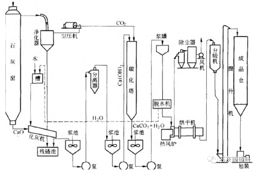 圖7-18輕質(zhì)碳酸鈣的生產(chǎn)工藝流程